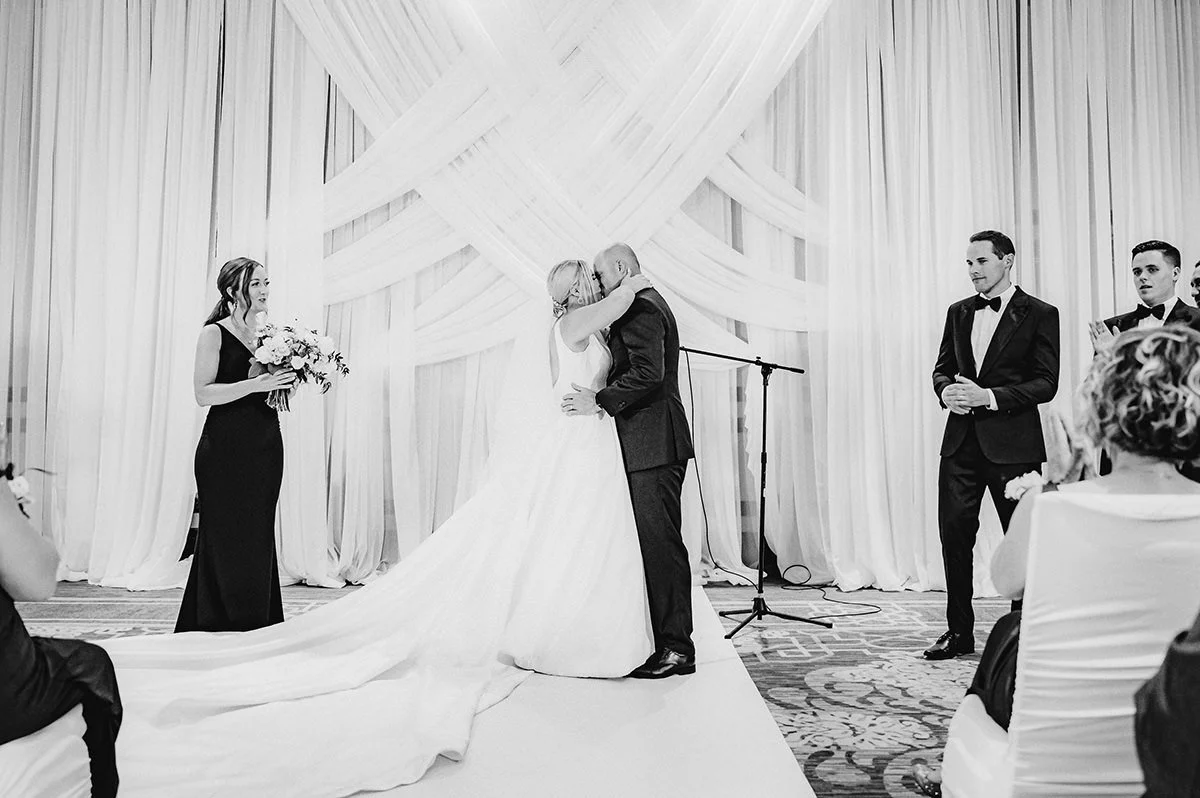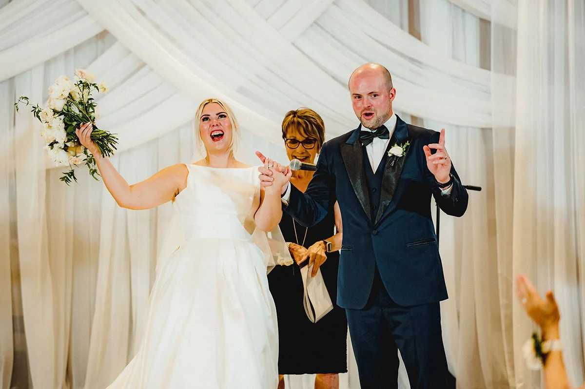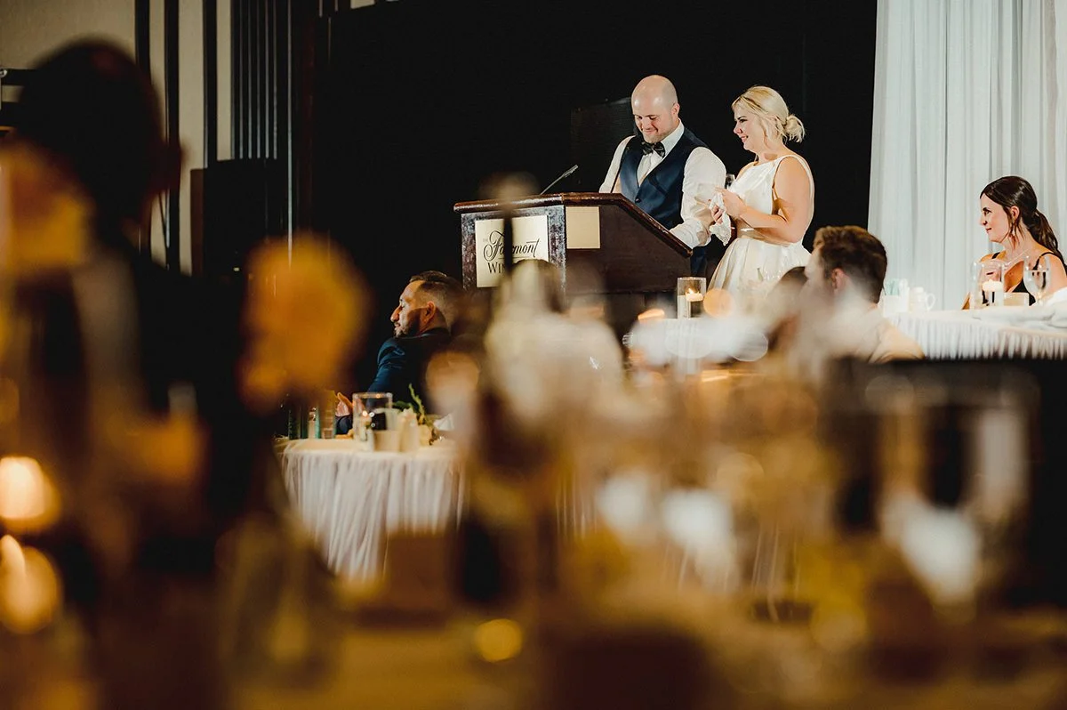 Julie and Jeff’s journey took a delightful detour to the James Avenue Pump House, where they enjoyed a few drinks before heading to the Fairmont Hotel for their recreated ceremony and lively reception. The Fairmont was nothing short of spectacular, with its opulent setting and grand ambiance. Simply Perfect Decor's meticulous touches and the enchanting florals from LilyStone Gardens enhanced the venue’s beauty, creating an atmosphere of sheer elegance.